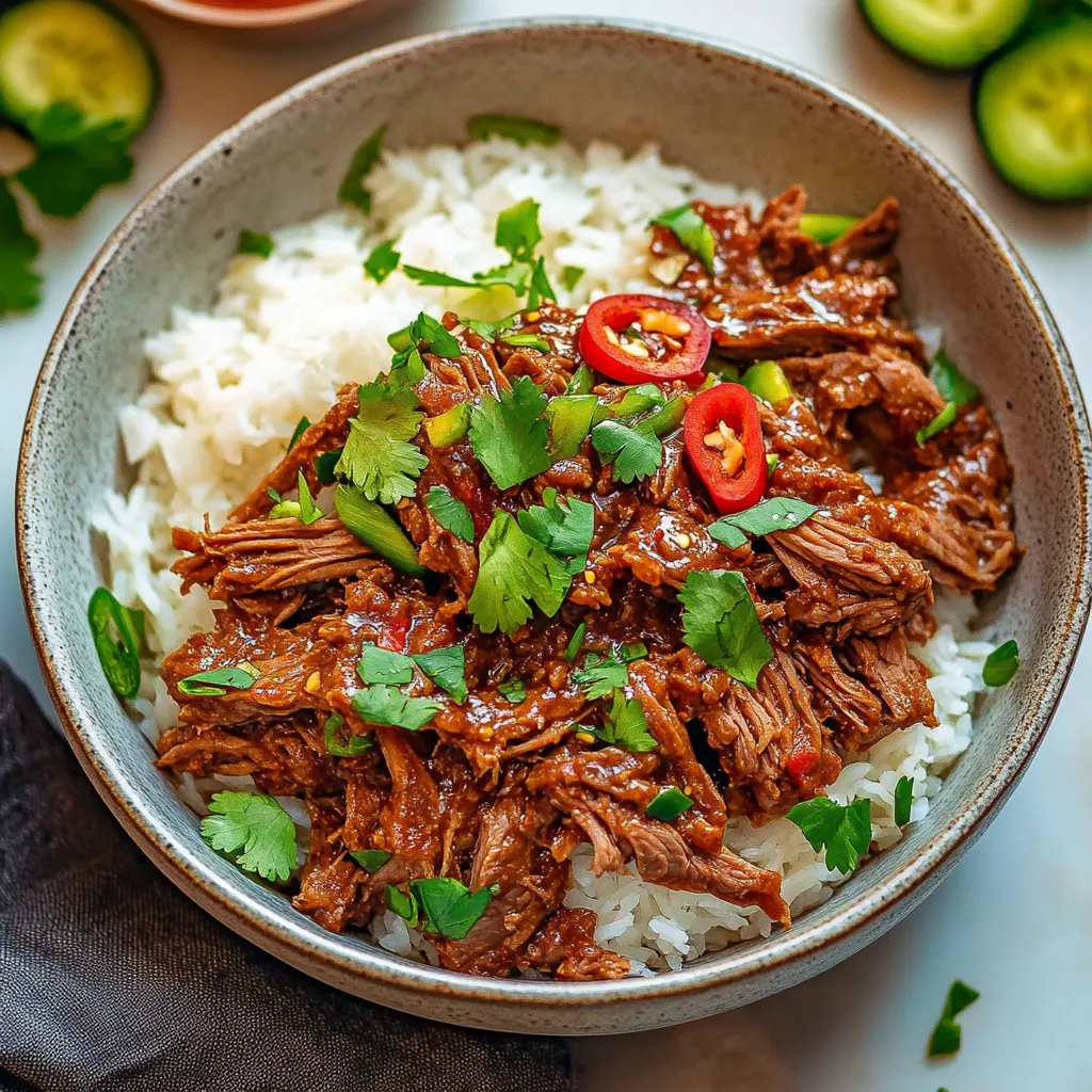 The presentation of Coconut Curry Shredded Beef Savory can turn an ordinary meal into something extraordinary! Consider serving it over fluffy jasmine rice or creamy coconut rice for added texture. To create visual appeal, garnish each plate with freshly chopped cilantro or Thai basil leaves alongside lime wedges for squeezing over top just before eating. If you’re feeling adventurous, serve it inside soft tortillas for delicious tacos that guests can assemble themselves!