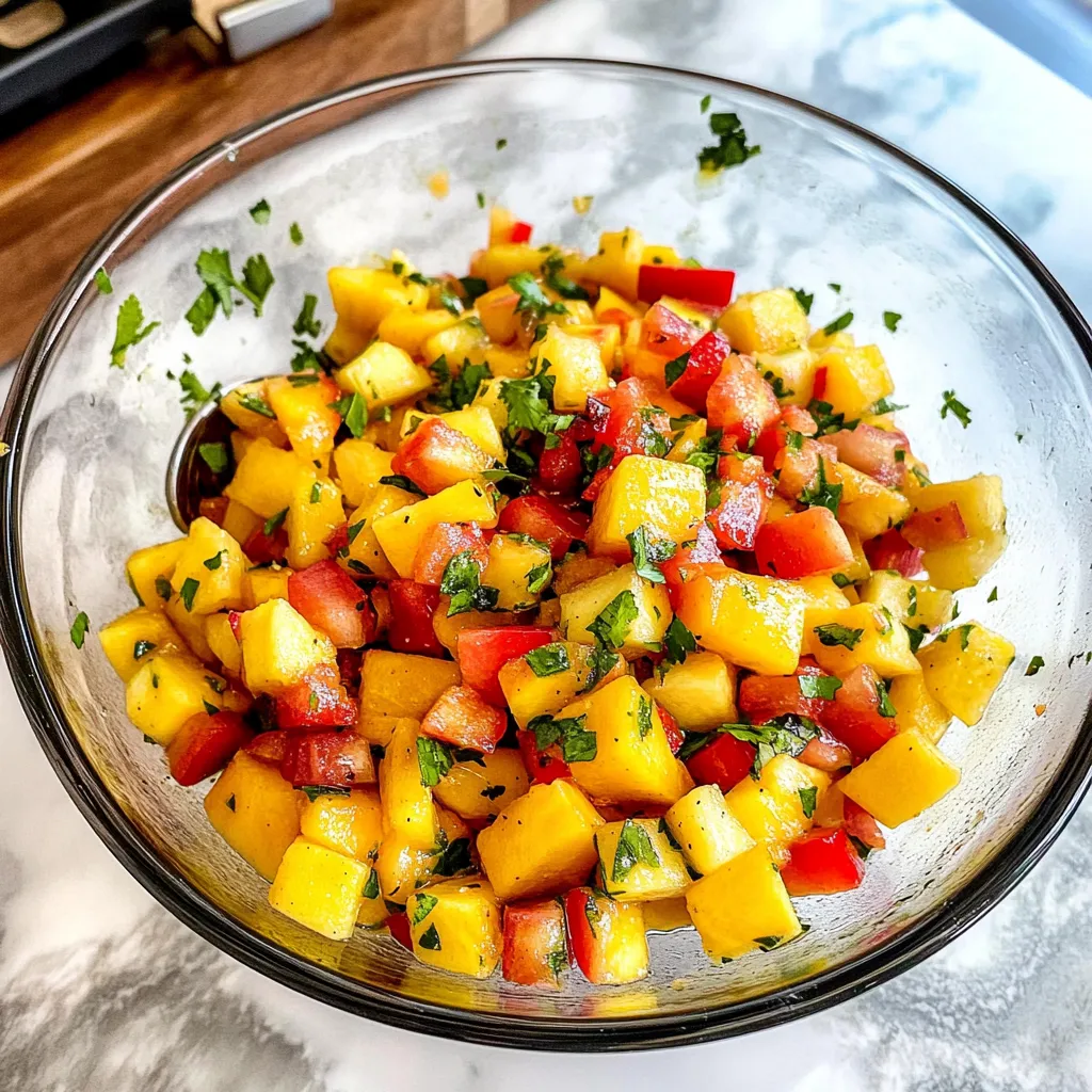 Your Mango and Pineapple Salsa deserves an equally stunning presentation! Serve it in a hollowed-out pineapple or coconut shell for an eye-catching centerpiece at summer parties. Pair it with colorful tortilla chips arranged around the bowl for an inviting display. Alternatively, use small glass jars for individual servings at picnics—these are not only cute but also practical!
