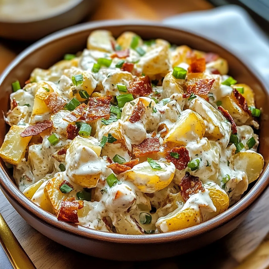 This salad not only tastes amazing but can also be presented beautifully! Consider serving it in a large wooden bowl adorned with fresh herb sprigs like parsley or cilantro on top for added color. You could also use individual mason jars for an impressive picnic display—layering ingredients gives each jar character while making servings easy! For festive occasions, garnish with additional crispy bacon bits and chives right before serving to elevate its visual appeal further!