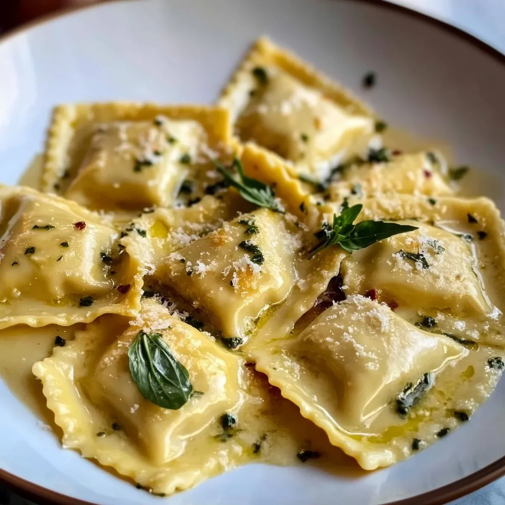 Your Dreamy Creamy Tuscan Ravioli deserves an equally stunning presentation! Serve it in shallow bowls instead of plates; this method allows guests to admire the beautiful colors of the creamy sauce against vibrant green spinach and rich red sun-dried tomatoes. Drizzle some extra virgin olive oil on top just before serving for an elegant finish. To add texture, sprinkle toasted pine nuts or breadcrumbs atop each serving—this contrasts nicely with creamy ravioli while adding crunch! Lastly, pairing it with a crisp salad or crusty bread complements this dish perfectly while enhancing its visual appeal.
