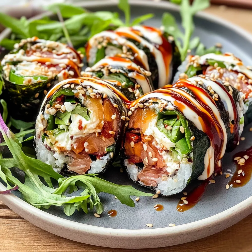 Your Savory Italian Sushi deserves an elegant presentation! Consider arranging your sushi rolls on a large wooden platter garnished with fresh basil leaves and lemon wedges for an inviting look. You can also serve them alongside small bowls of balsamic glaze for dipping or drizzle glaze directly over the rolls for visual appeal. For added flair, sprinkle some sesame seeds on top or include colorful edible flowers as garnish—they’ll make your dish pop!